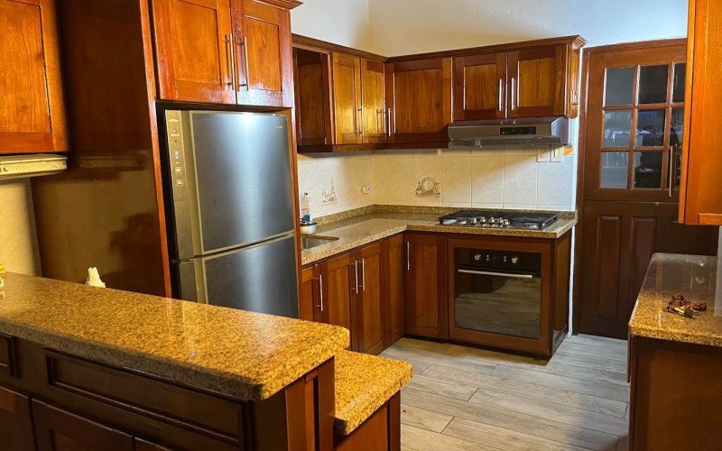 Discover comfortable living in this inviting three-bedroom, one-and-a-half-bathroom rental residence nestled in the desirable Seroe Preto neighborhood of Paradera. The home features a well-appointed kitchen, a comfortable living room, and a dining area perfect for entertaining, along with the convenience of a walk-in closet. The expansive backyard is an entertainer's dream, featuring a rear patio, lush landscaping with a variety of shrubs and trees, and a shaded pergola area. The property boasts a solid concrete block fence with concrete pillars, a front fence with stylish horizontal wooden slats, and secure iron gates for both front entrance and garage. Enjoy the convenience of this central location, just a seven-minute drive to Oranjestad and beautiful beaches.